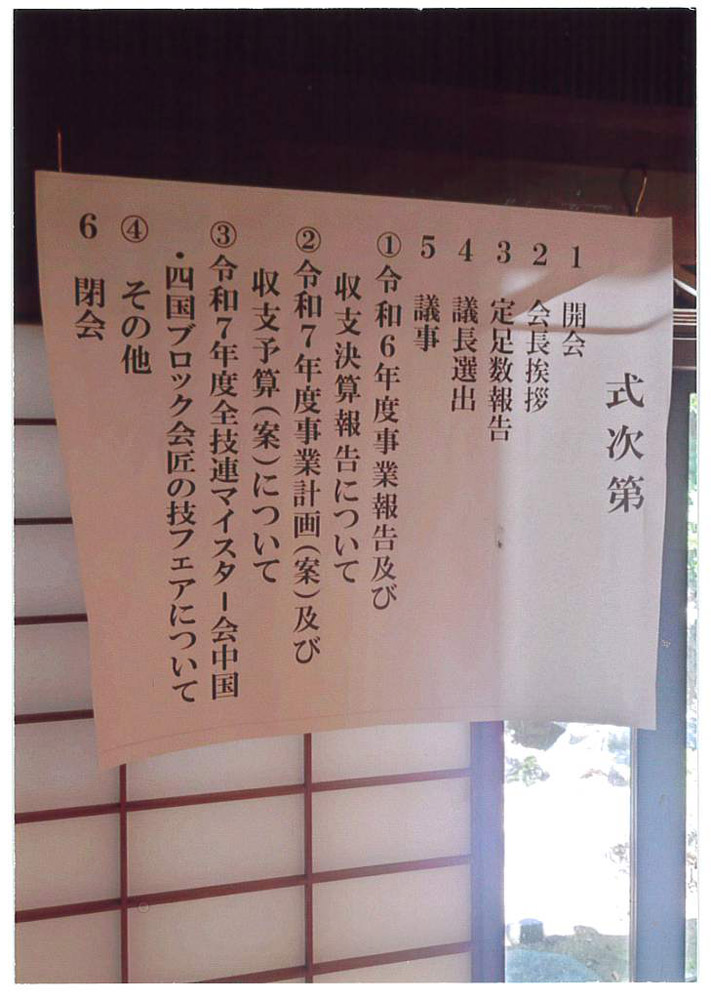 | 〇議 題 | ・令和6年度 事業報告及び収支決算報告について ・令和7年度 事業計画(案)及び収支予算(案)について ・令和7年度 中国・四国ブロック会匠の技フェア2025について ・その他 |