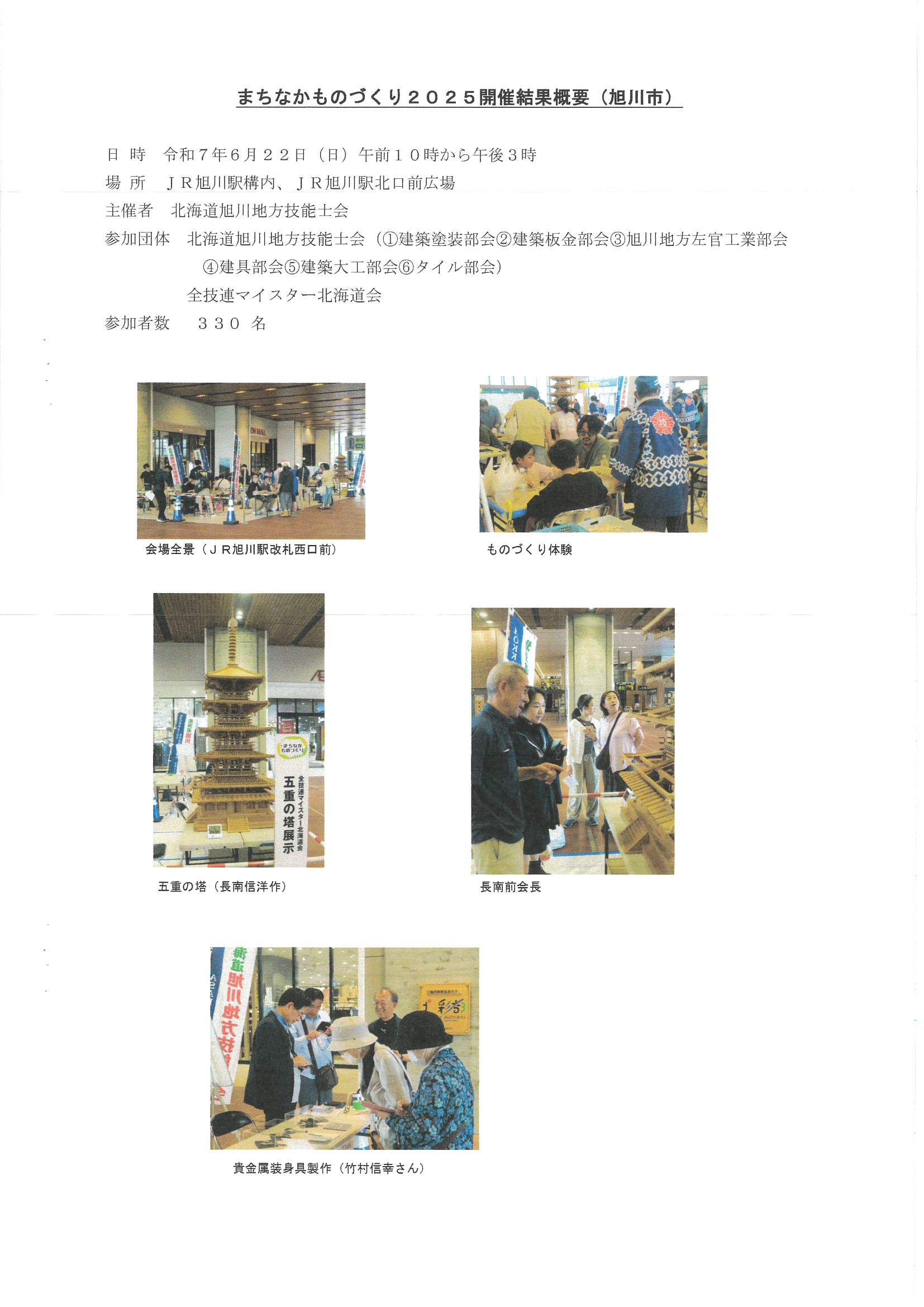 こどもたちにものづくりの楽しさを体験してもらうことを目的としたイベントで、北海道旭川地方技能士会が旭川市やJR北海道の協力を得て2年前から開催している。