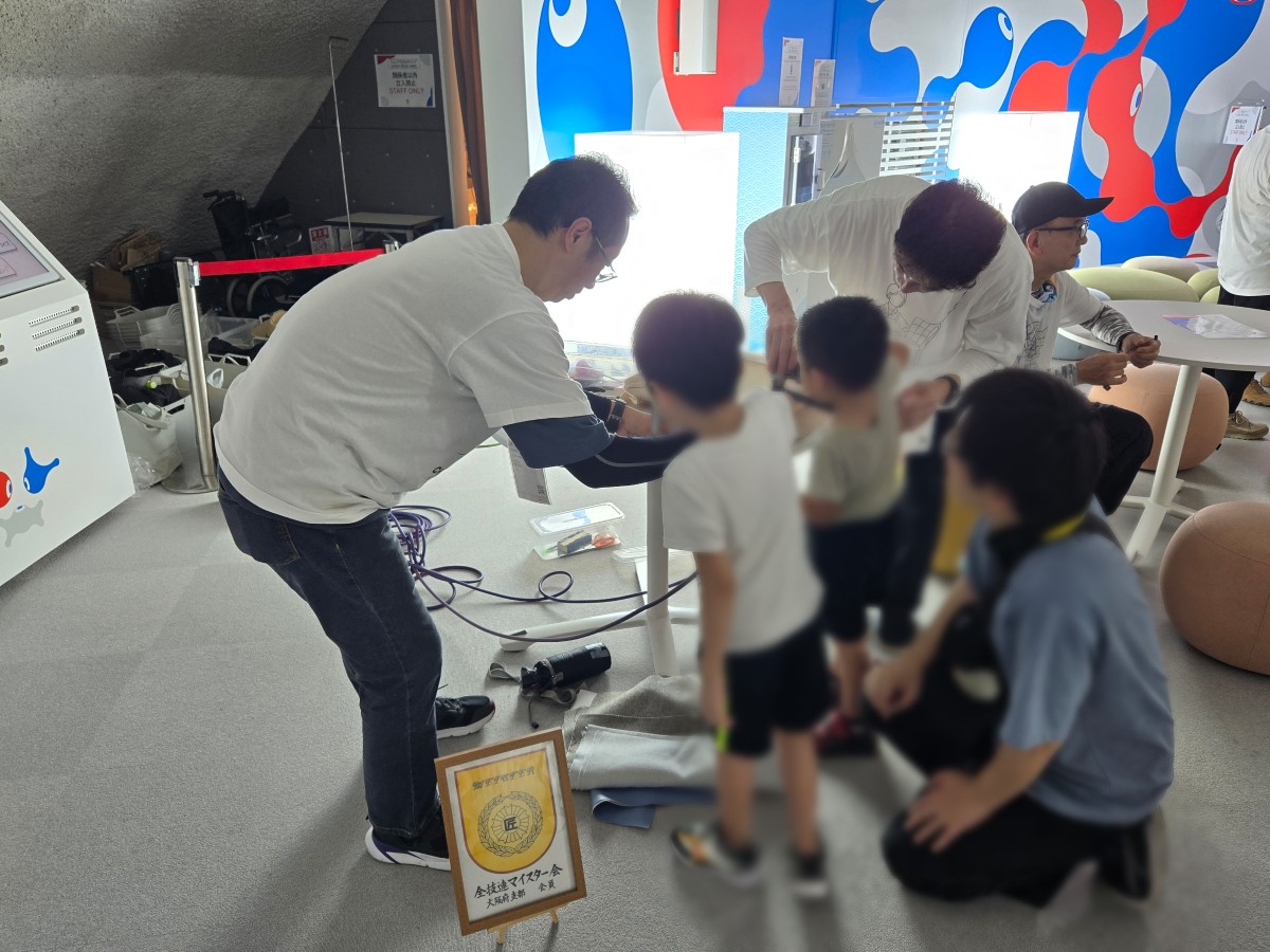 参加する全技連マイスター会大阪府支部会員のほとんどが講師を務め、来場の子ども達や一般消費者に、ものづくりの楽しさと、全技連マイスターの持つ優れた椅子張り技能を紹介して振興活動を行いました。