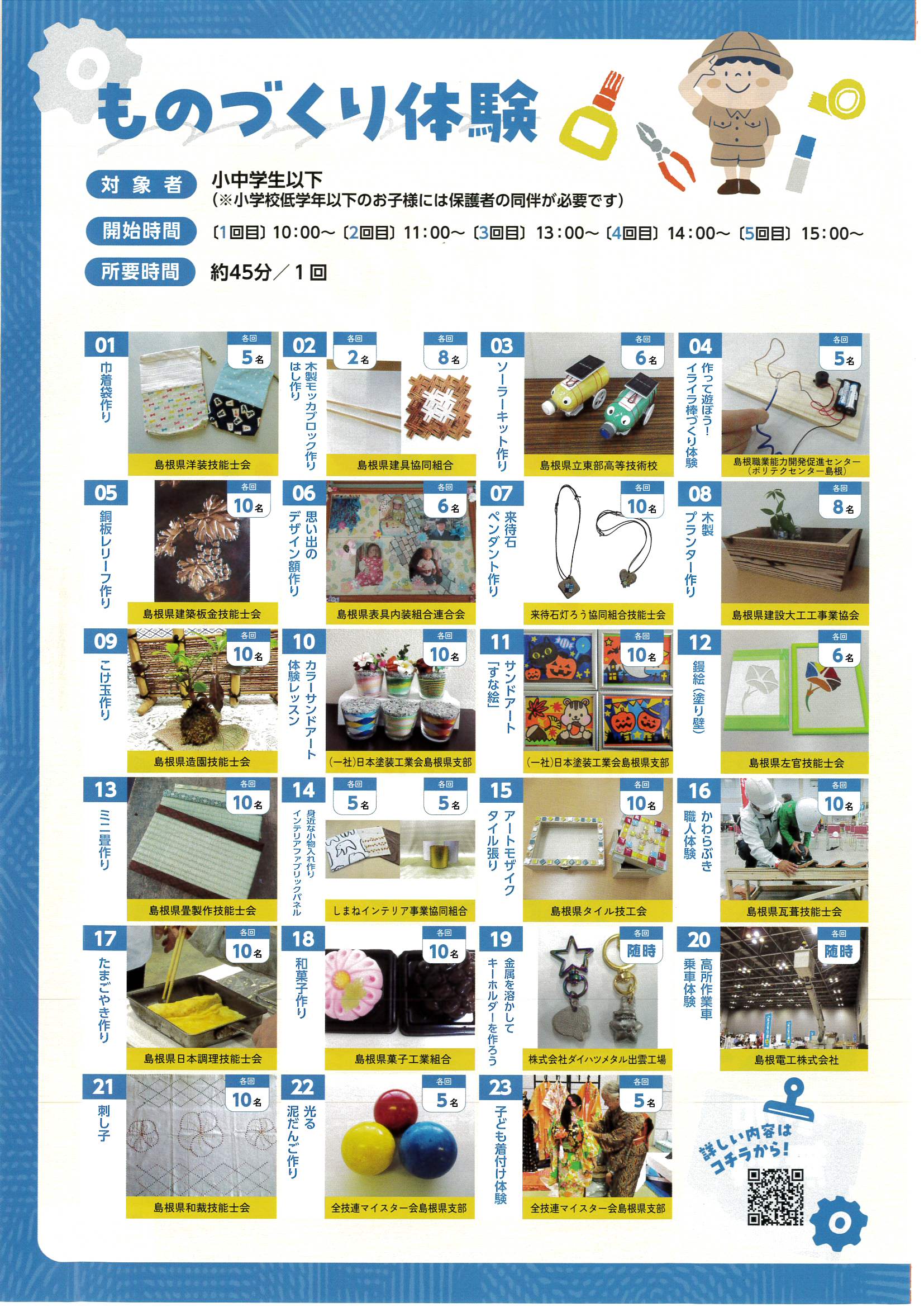 ①技能尊重気運の醸成(イメージアップや評価向上)及び次世代を担う後継技能者の確保・定着を図り、島根県における産業の振興に寄与すること。