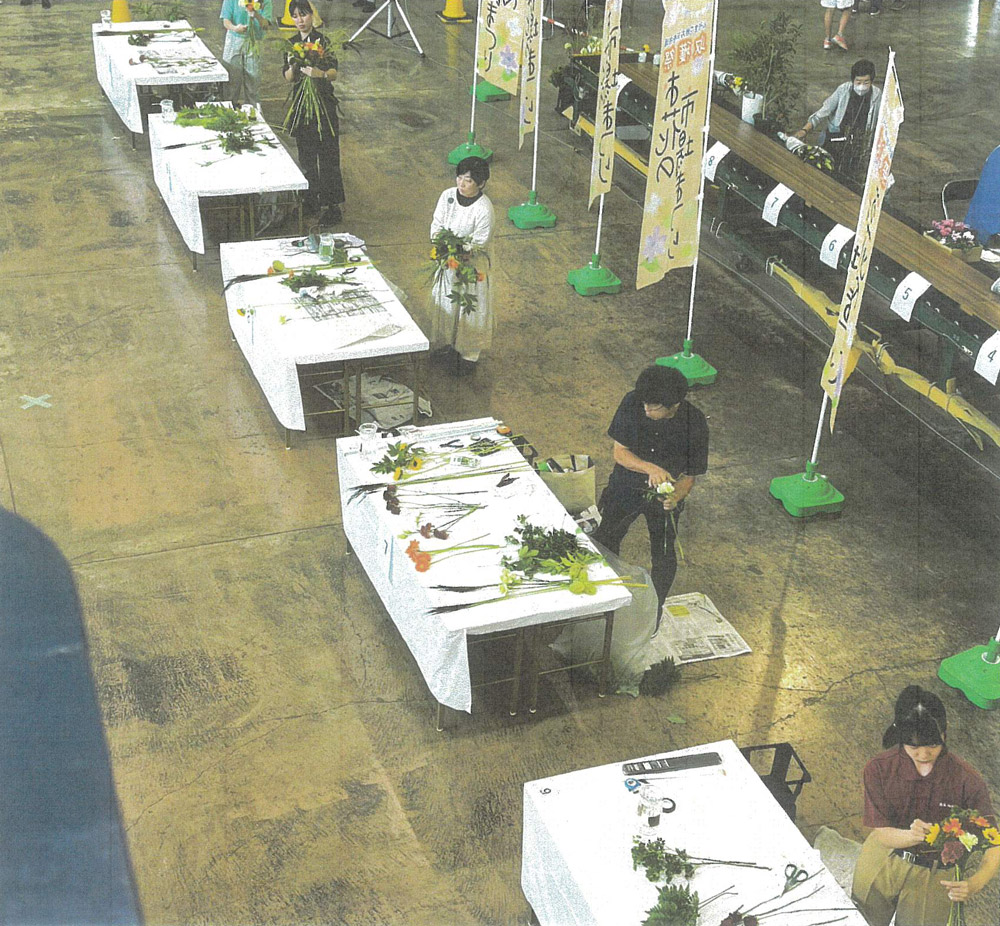 | 〇事業概要 | 若い人材が技術やデザインを学び合い発表する場や学生と花業界が交流できる機会が必要と考え、3級を持つ高校生も参加できるコンテストを企画しました。県内で活躍する技能検定1・2・3級を持つフローリストがコンテストに参加し、学生や見学する来場者に花の楽しさを発信し、花業界の活性化、人材育成及び花普及活動への協力を求めました。 |