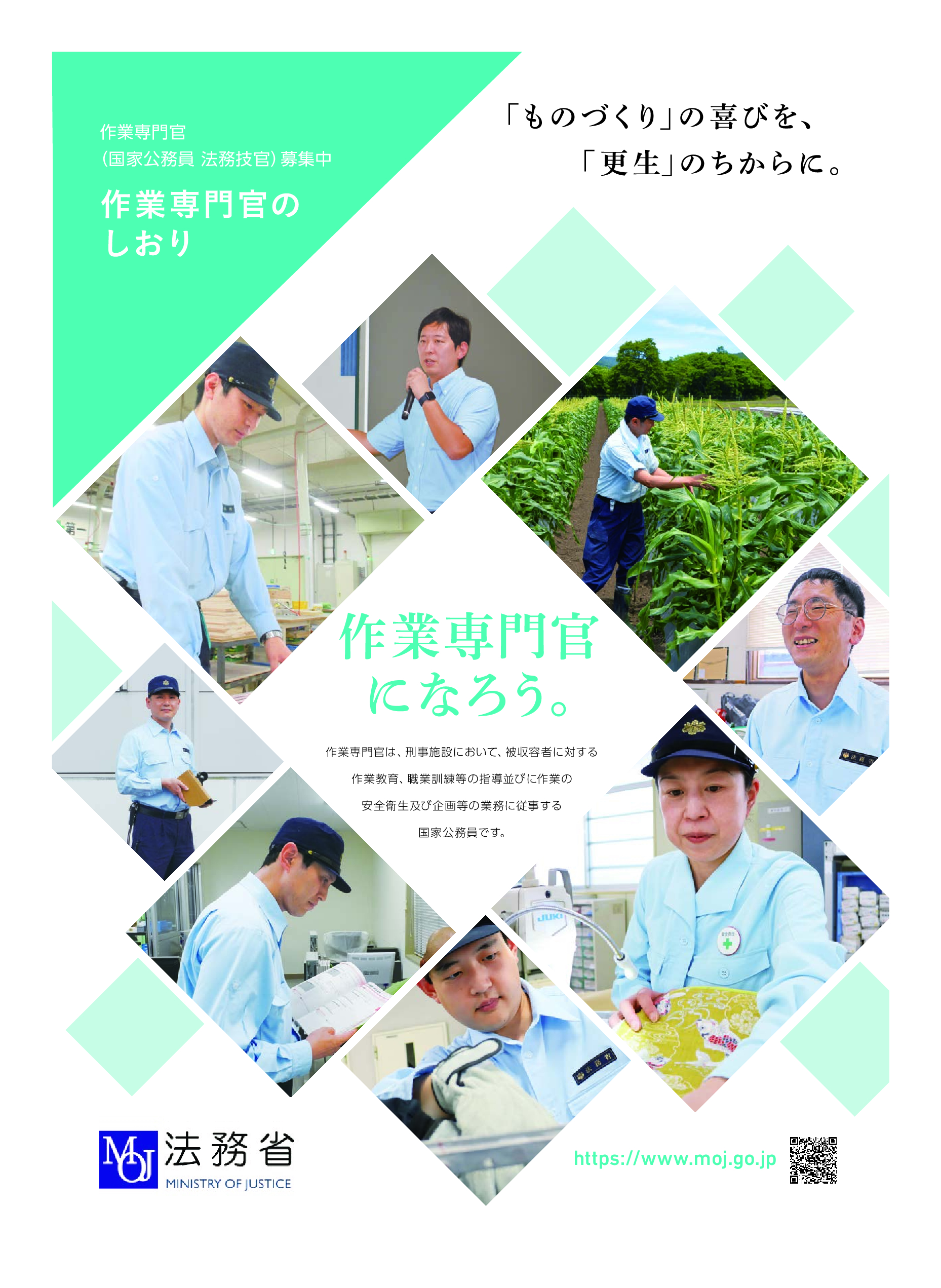 令和2年9月23日、法務省矯正局成人矯正課長より「法務技官」(作業専門官)採用広告の「全技連マイスター会ホームページ」への登載依頼がありました。