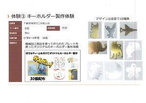 体験プログラムの全国ブースにおいては、全技連マイスター会から、「山梨県支部」及び「千葉県支部」の2団体が出展しました。山梨県支部では、小学生以下の子どもを対象にした「親子ものづくり体験教室」を企画し、3日間で延べ103名の親子連れに体験した頂き、 将来を担う子供たちに「ものづくりの楽しさ」を知って頂く良い機会にもなり、全技連マイスター会の知名度向上にも繋げることができました。