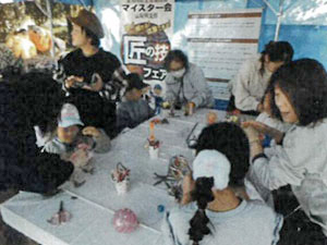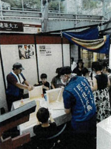 この技能まつりは、山梨県技能士会連合会所属の7団体に加え、全技連マイスター会山梨県支部ほか4団体が参加し、 各技能士会の作品展示・物品販売、また、小学生を対象とした「親子ものづくり体験教室」では、子どもたちにも大変好評で「親子のふれあい」や「ものづくり」に対する興味増進にもつながりました。