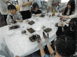 この技能展では、左官技能士会をはじめとして、19の団体が25のテーマでものづくり体験を行いました。全体の来場者は、500名でした。