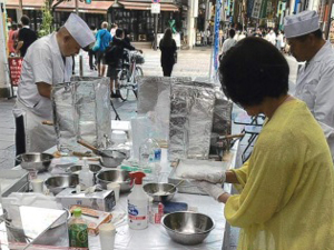 〇概 要 | 全技連マイスター会としては、日本調理技能士会所属の指導員が、白玉お汁粉製作の実演を行い、40名の小学校低学年の児童が参加しました。 ・実演 白玉お汁粉製作 ・展示 日本料理の調理器具 |